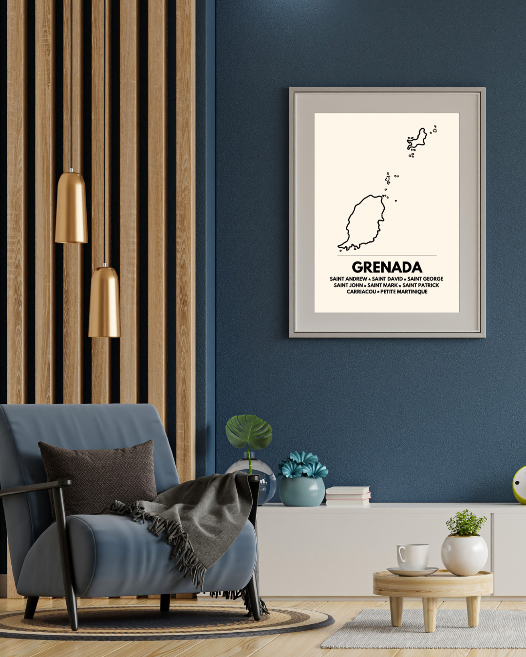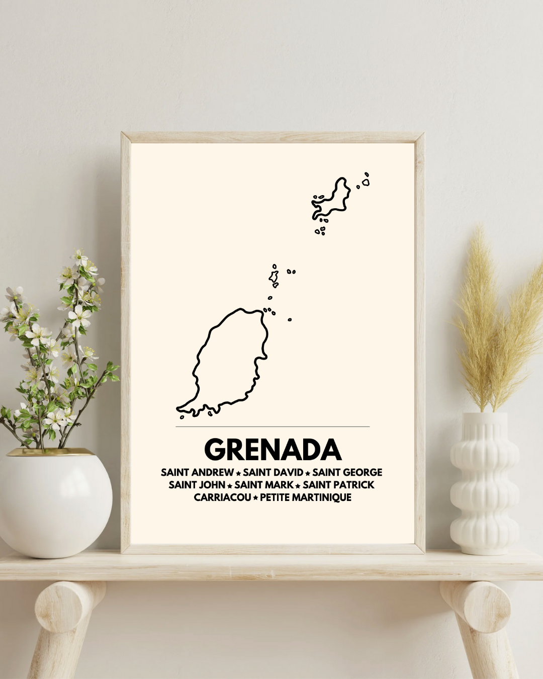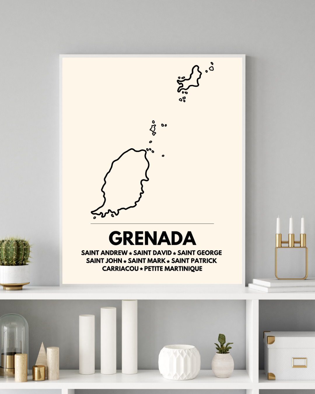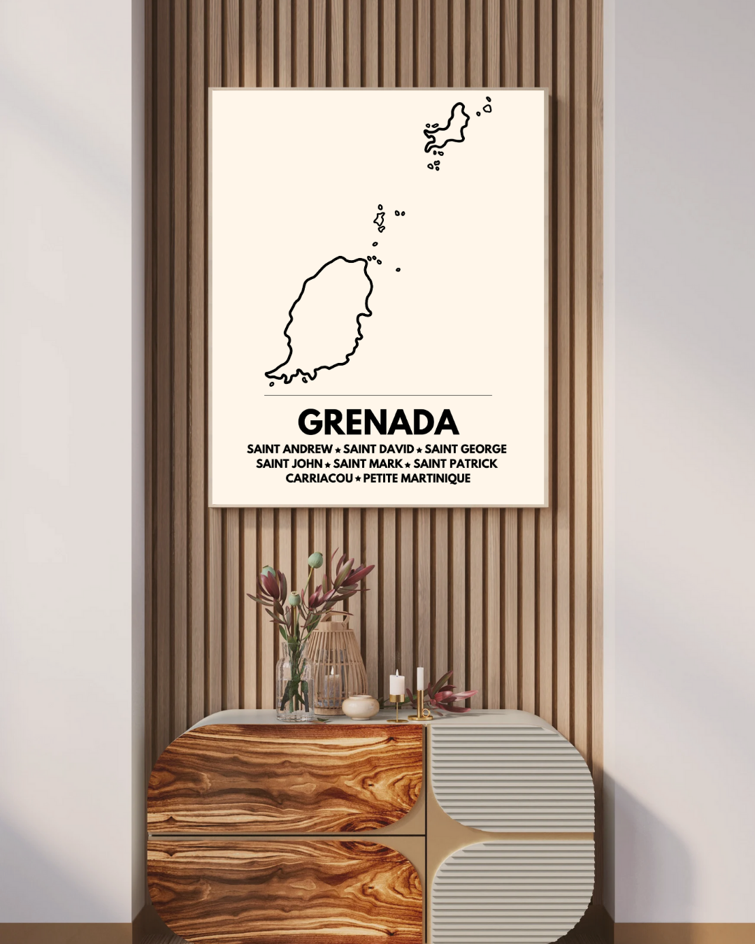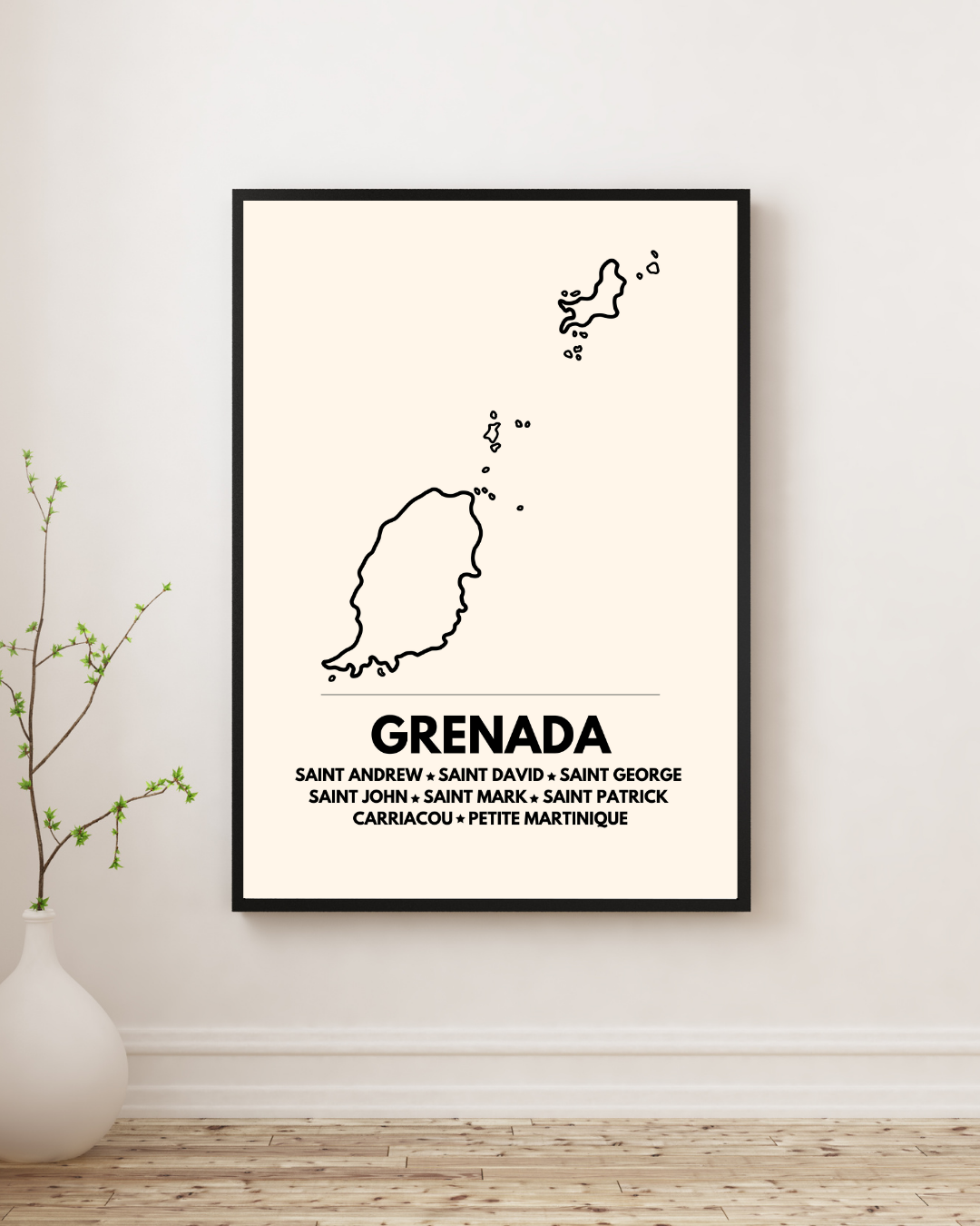 Bring the beauty of the Spice Isle into your home with this elegant Grenada Island & Parishes Poster Print. Featuring a clean outline silhouette of Grenada and its surrounding islands, this print is paired with the names of all the parishes at the bottom, creating a design that’s both modern and deeply rooted in heritage.