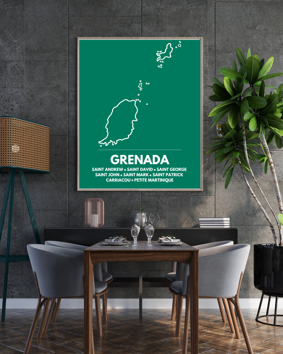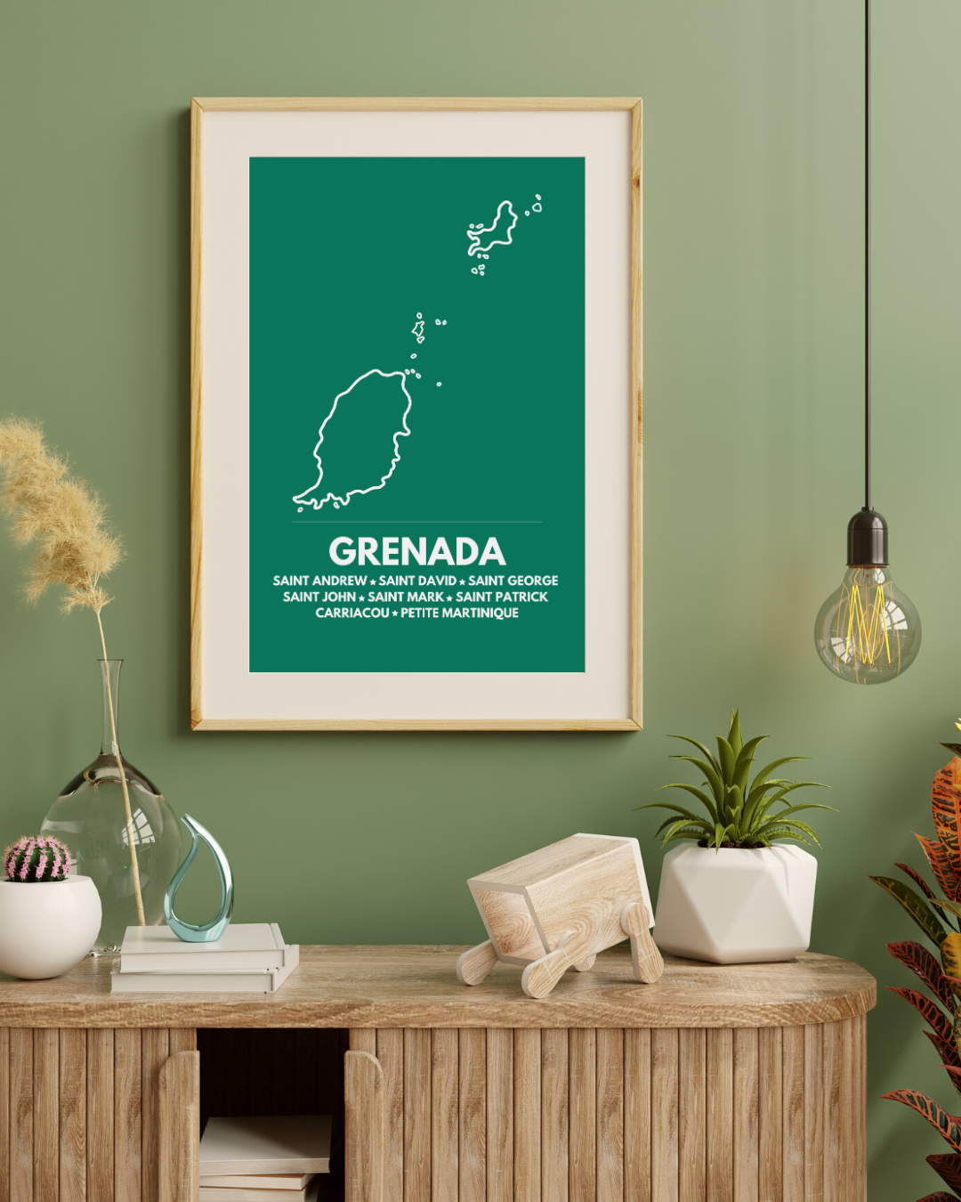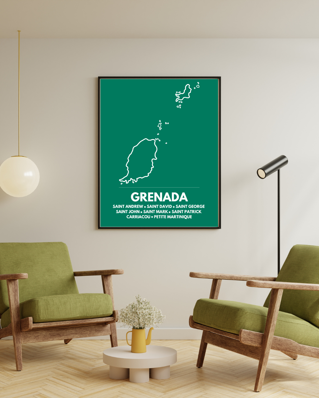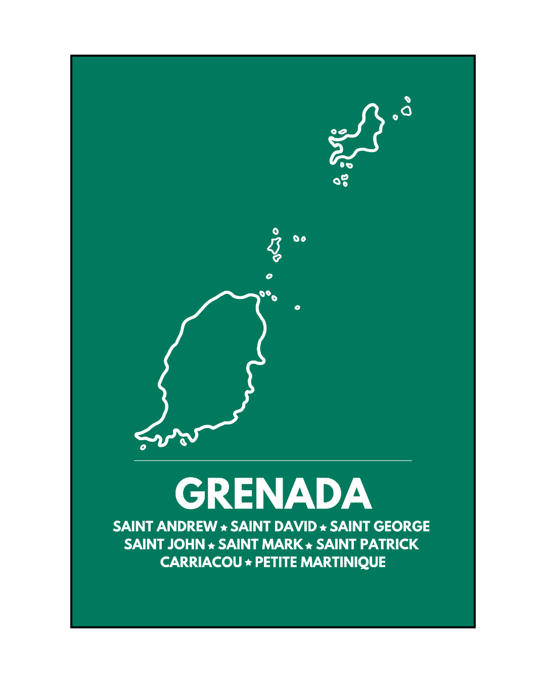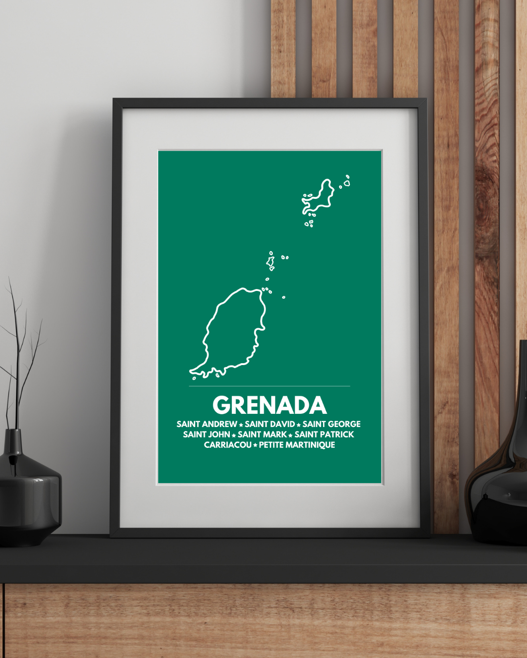 Bring the beauty of the Spice Isle into your home with this elegant Grenada Island & Parishes Poster Print. Featuring a clean outline silhouette of Grenada and its surrounding islands, this print is paired with the names of all the parishes at the bottom, creating a design that’s both modern and deeply rooted in heritage.